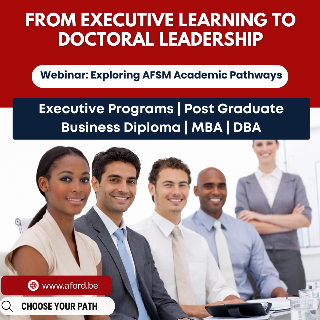 During this session, we will first introduce the Post Graduate Business Diploma as the entry point into the AFSM learning ecosystem. In the second part, we will present the broader pathway available to our students, including Executive Programs for professionals, the Post Graduate Business Diploma, MBA opportunities, and the Doctorate in Business Administration (DBA). Together, these programs create a continuous learning journey designed for working professionals who wish to develop practical skills, strategic thinking, and advanced managerial insight at different stages of their careers.